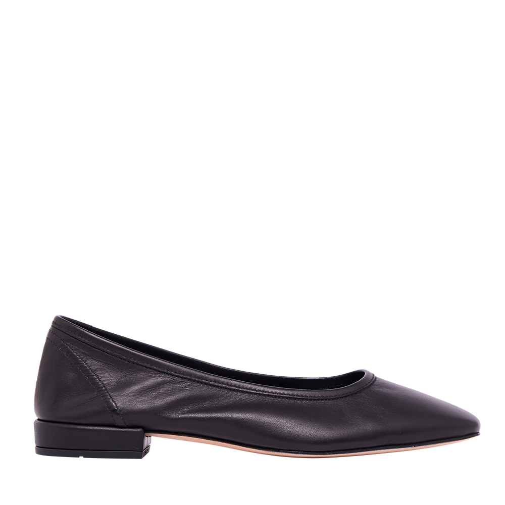 Ballerine en veau velours très souple. Semelle en cuir. Empeigne haute. Fabriquée en Turquie.