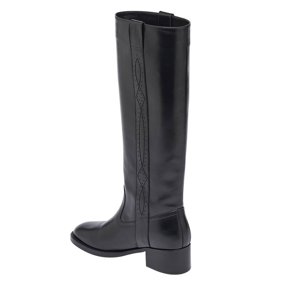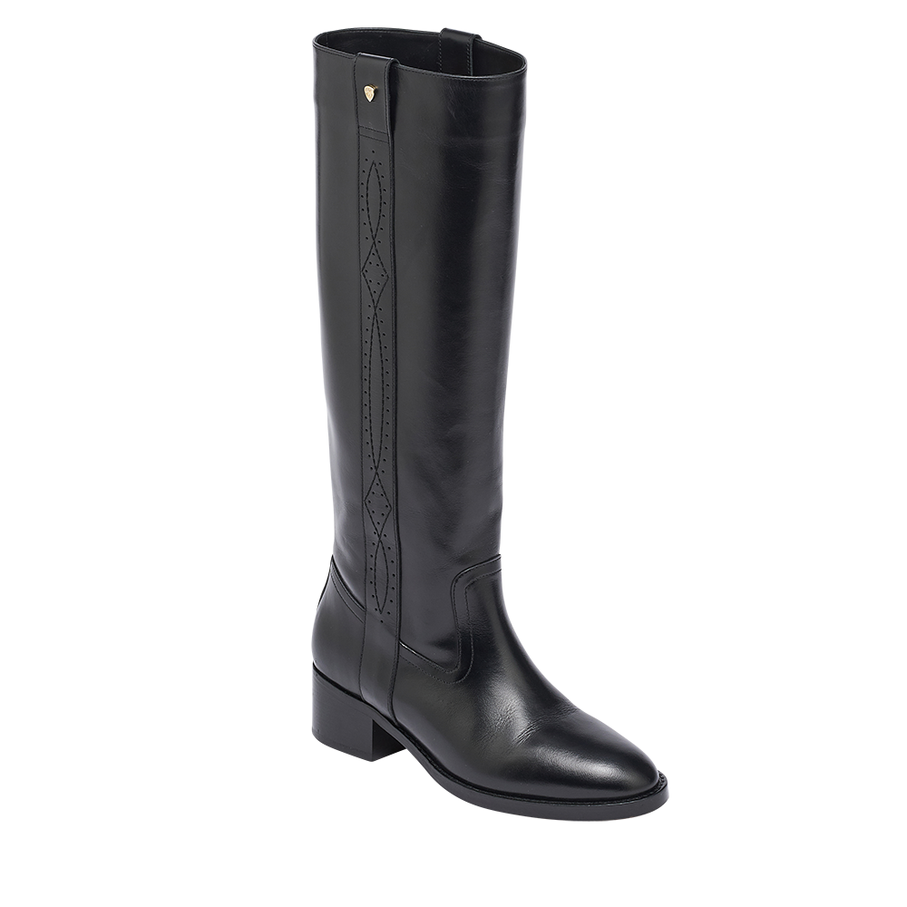 Une botte sobre et élégante, aux faux airs de camarguaise. Ses lignes droites, rehaussées de découpes sellier et adoucies par la rondeur de son bout, lui donnent une allure affirmée. Un subtil jeu de découpes et de surpiqûres orne sa tige. Elle se porte aussi bien sur un jean qu’avec une robe fluide.
