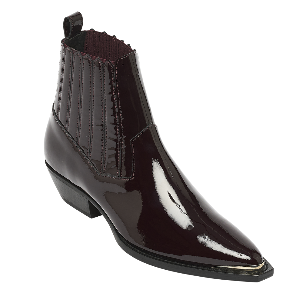 Bottines Roseanna en cuir verni, modèle GEORGIA, couleur bordeaux.