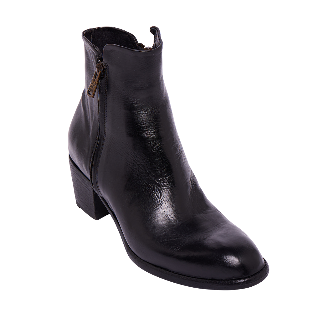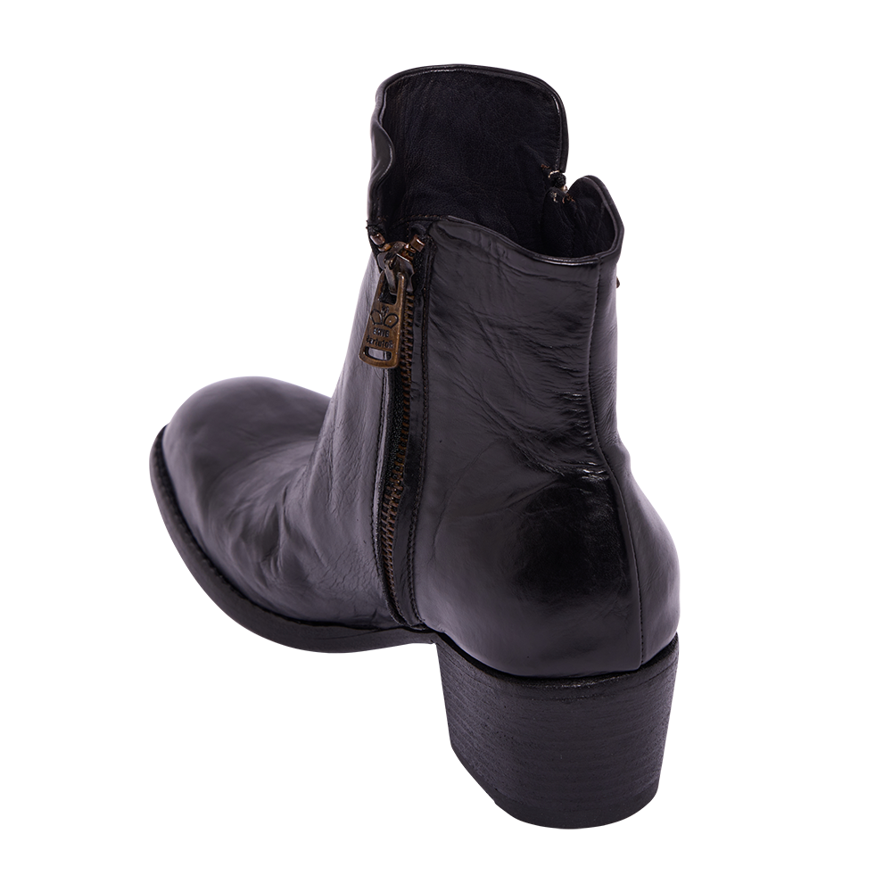 Bottines en cuir avec double fermeture éclair. Doublées. Semelle en cuir cousue avec injection de caoutchouc. Confortable grâce à la semelle intérieure en cuir rembourrée.