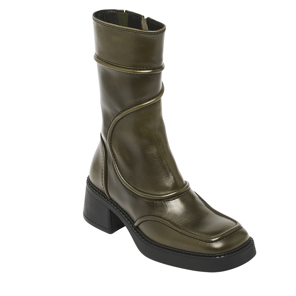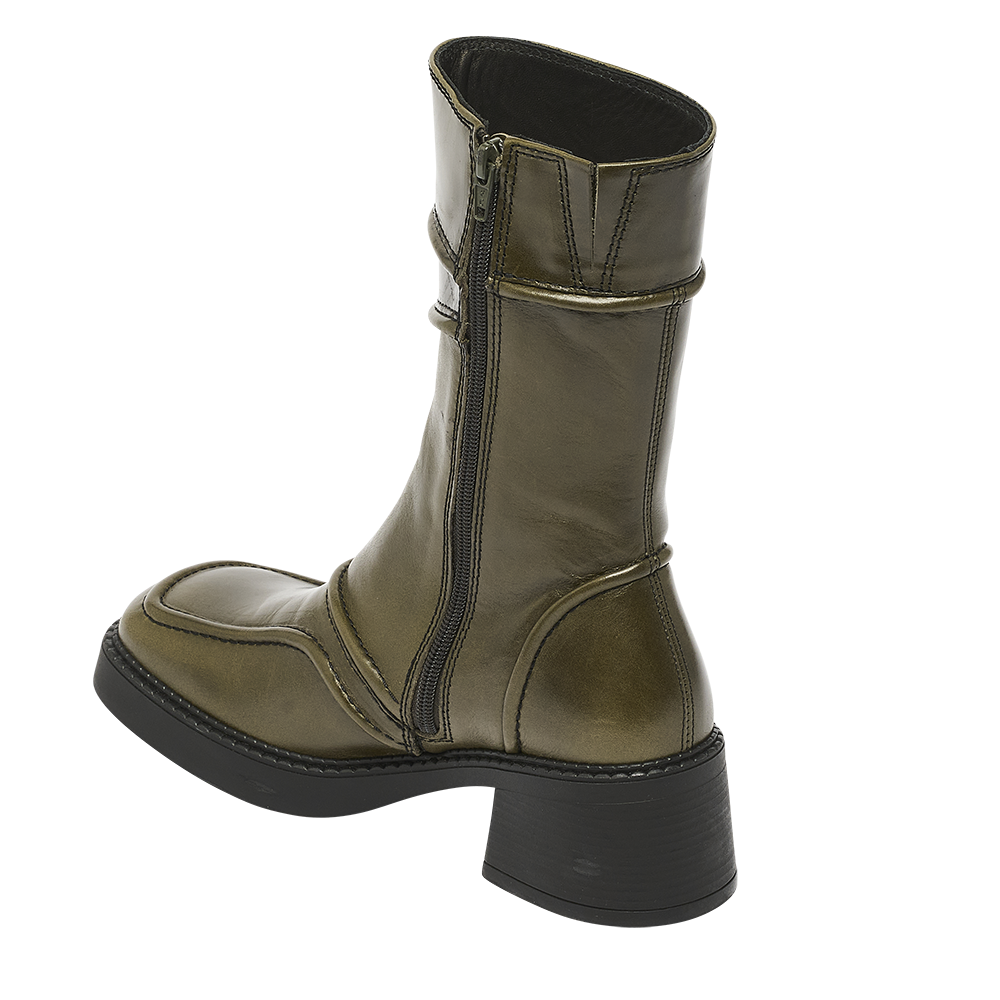 fermeture éclaire sur le coté, proche de la jambe, hauteur de la tige à mi-mollet