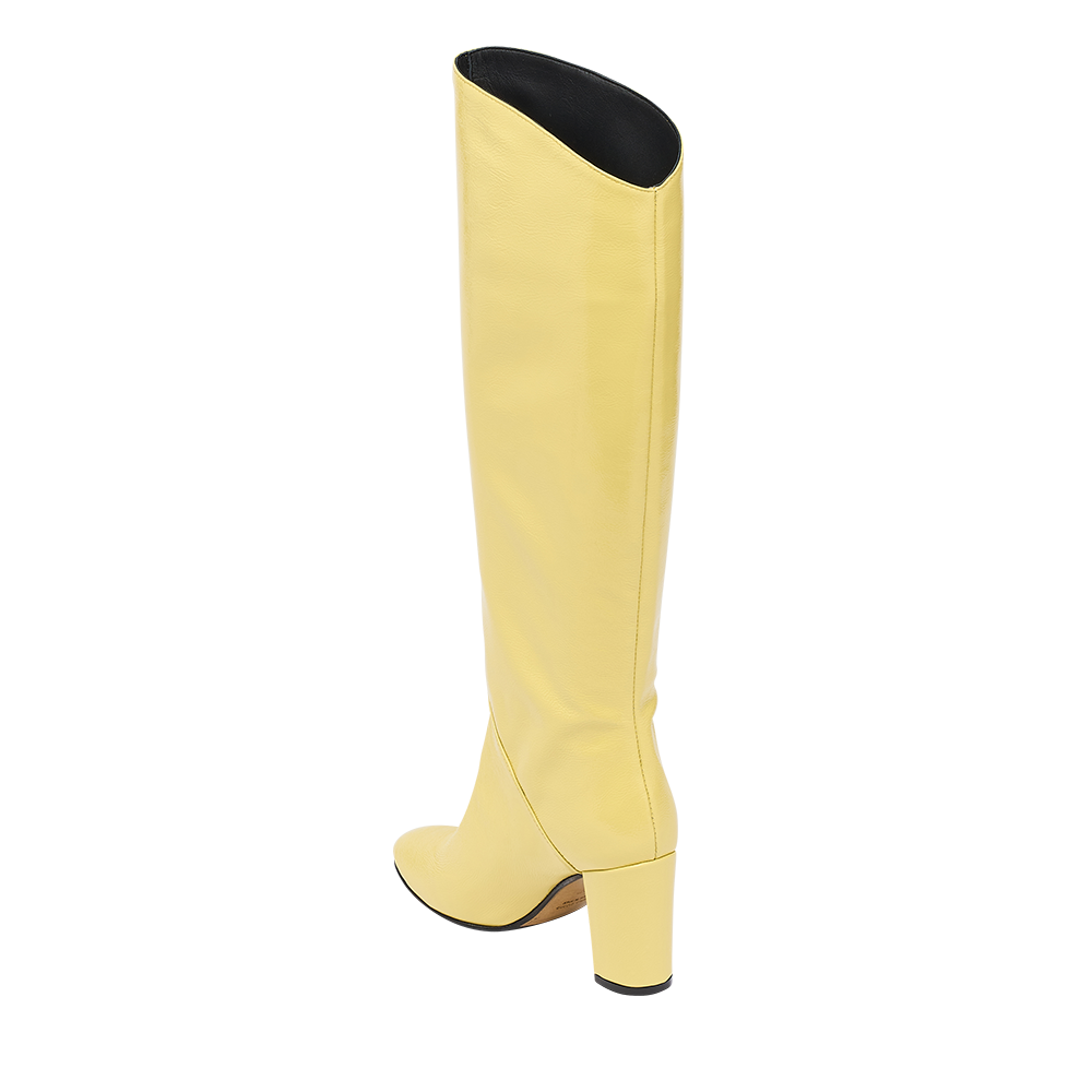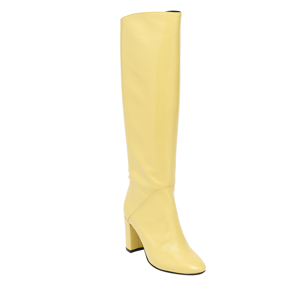 Botte cavalière à talon épais en cuir vernis façon vinyl