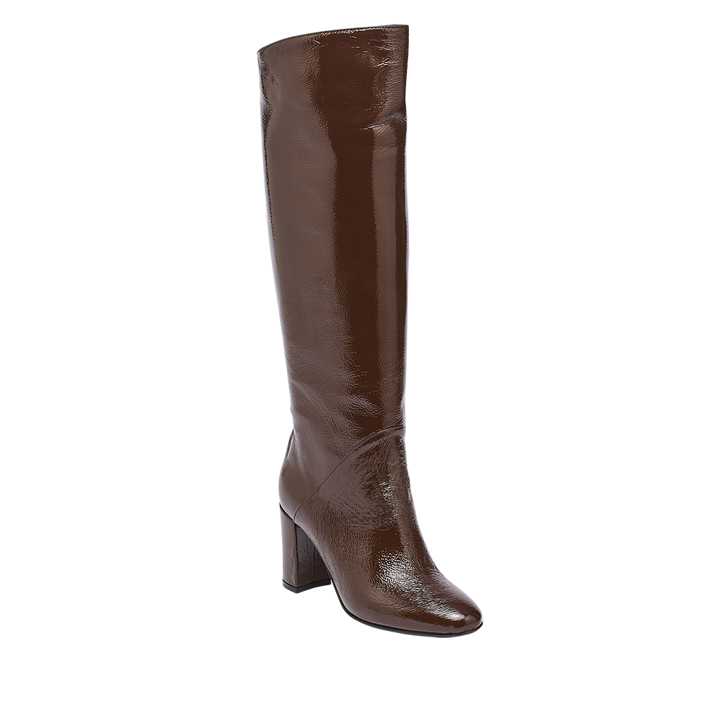 Botte cavalière à talon épais en cuir vernis façon vinyl