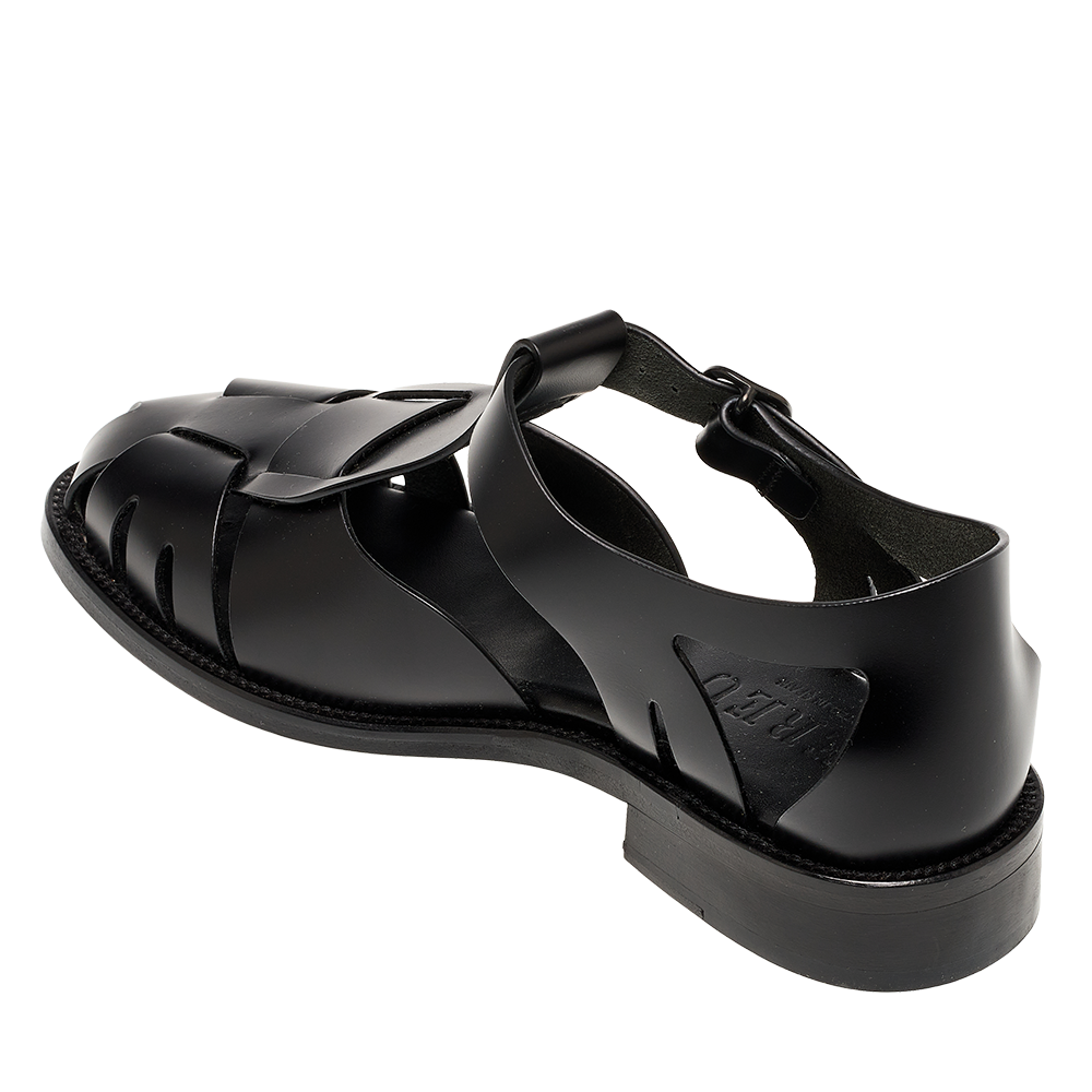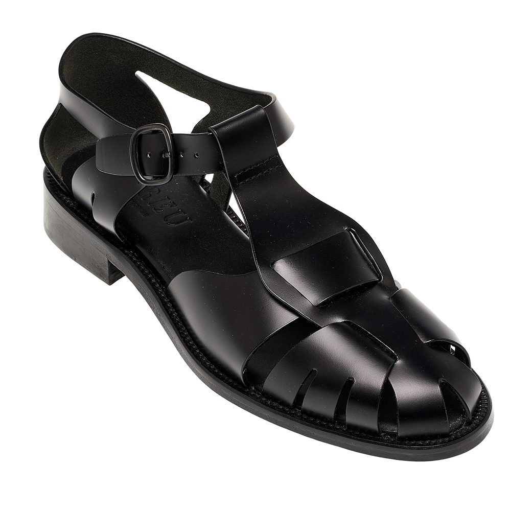 Sandale de pêcheur à bout rond et découpe sur le devant, confectionnée en cuir de veau espagnol.