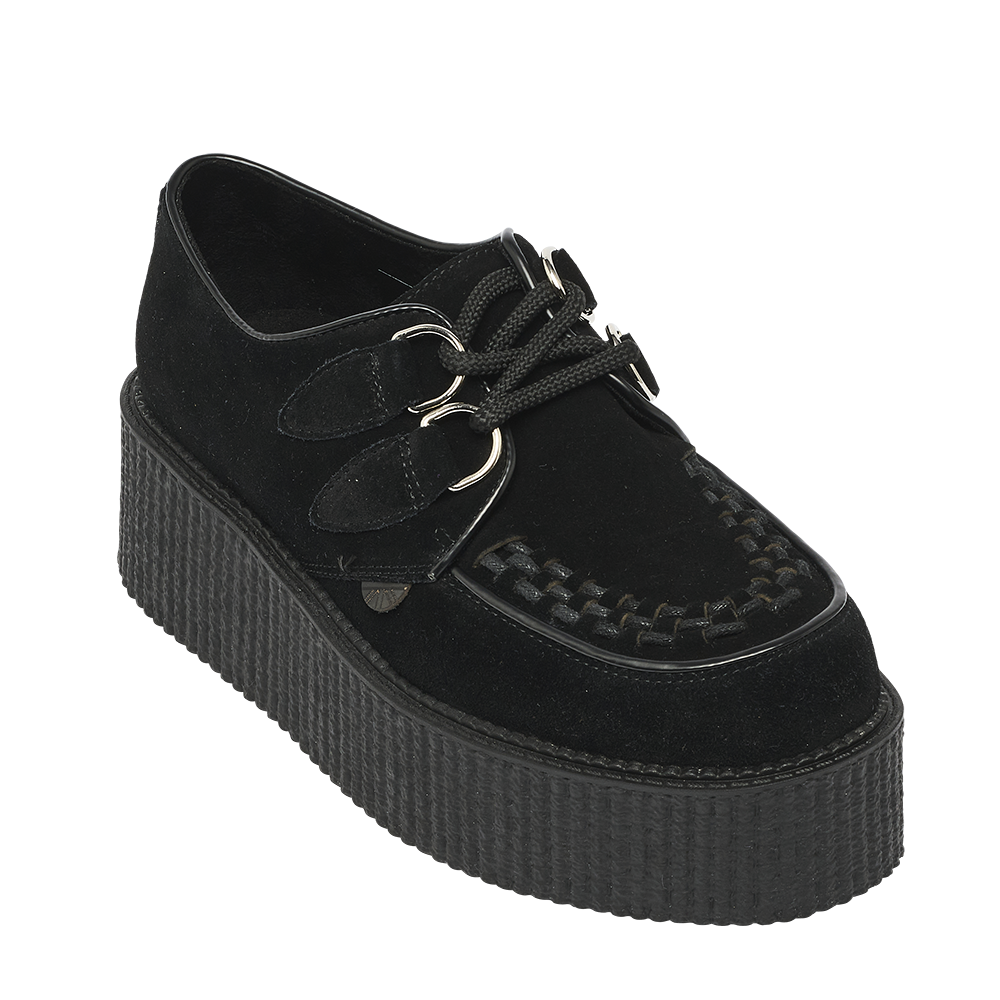 Montée sur une semelle en caoutchouc noire synthétique d’environ 5 cm, ces creepers inspirée du rock/punk des britanniques vous assurera un look décalé et original. Légère aux pieds c’est dans un réel confort que vous vous baladerez au son des Arctic Monkeys ou des Sex Pistols.