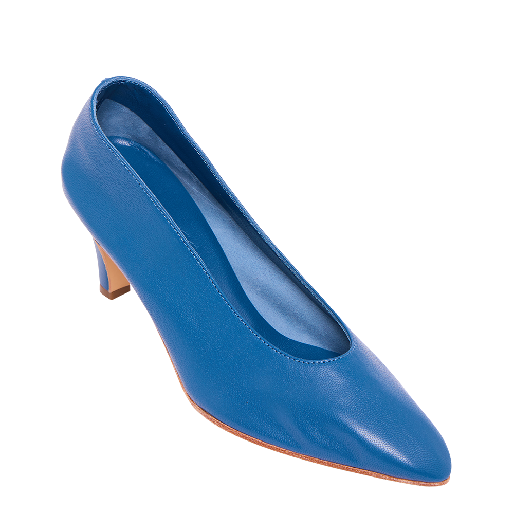Escarpin à talon en cuir extra souple. Empeigne haute.