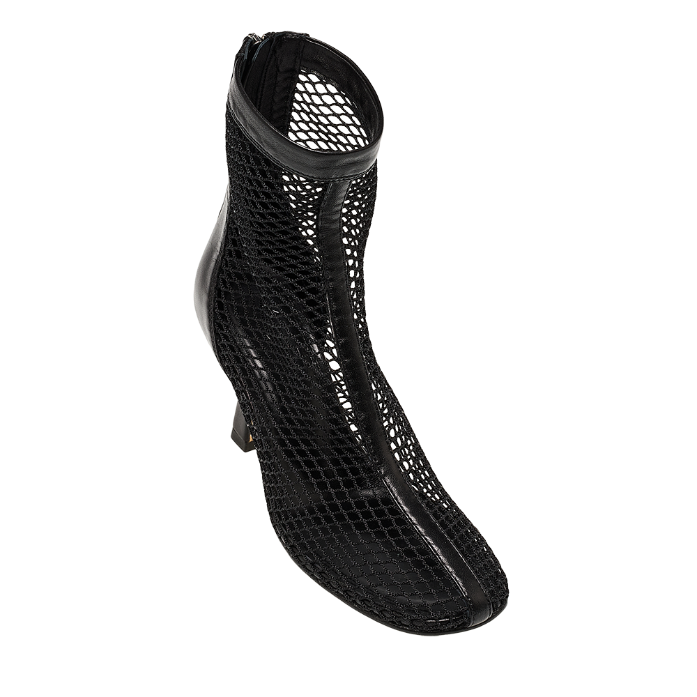 La bottine Fira offre une interprétation contemporaine du savoir-faire emblématique de Souliers Martinez, alliant la délicatesse du résille à des empiècements en cuir lisse. Sa construction ajourée raffinée épouse délicatement le pied et la cheville, créant une silhouette aérienne et légère tout en assurant une structure élégante et un bon maintien.