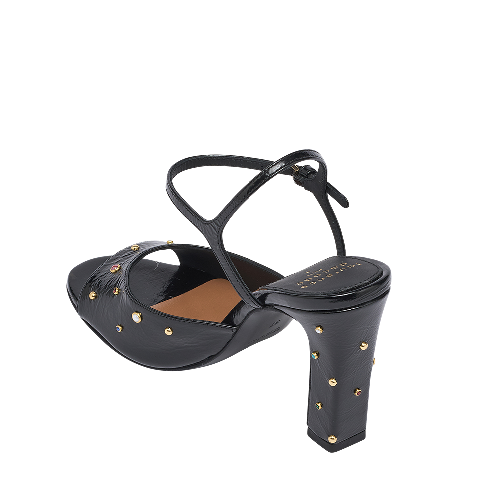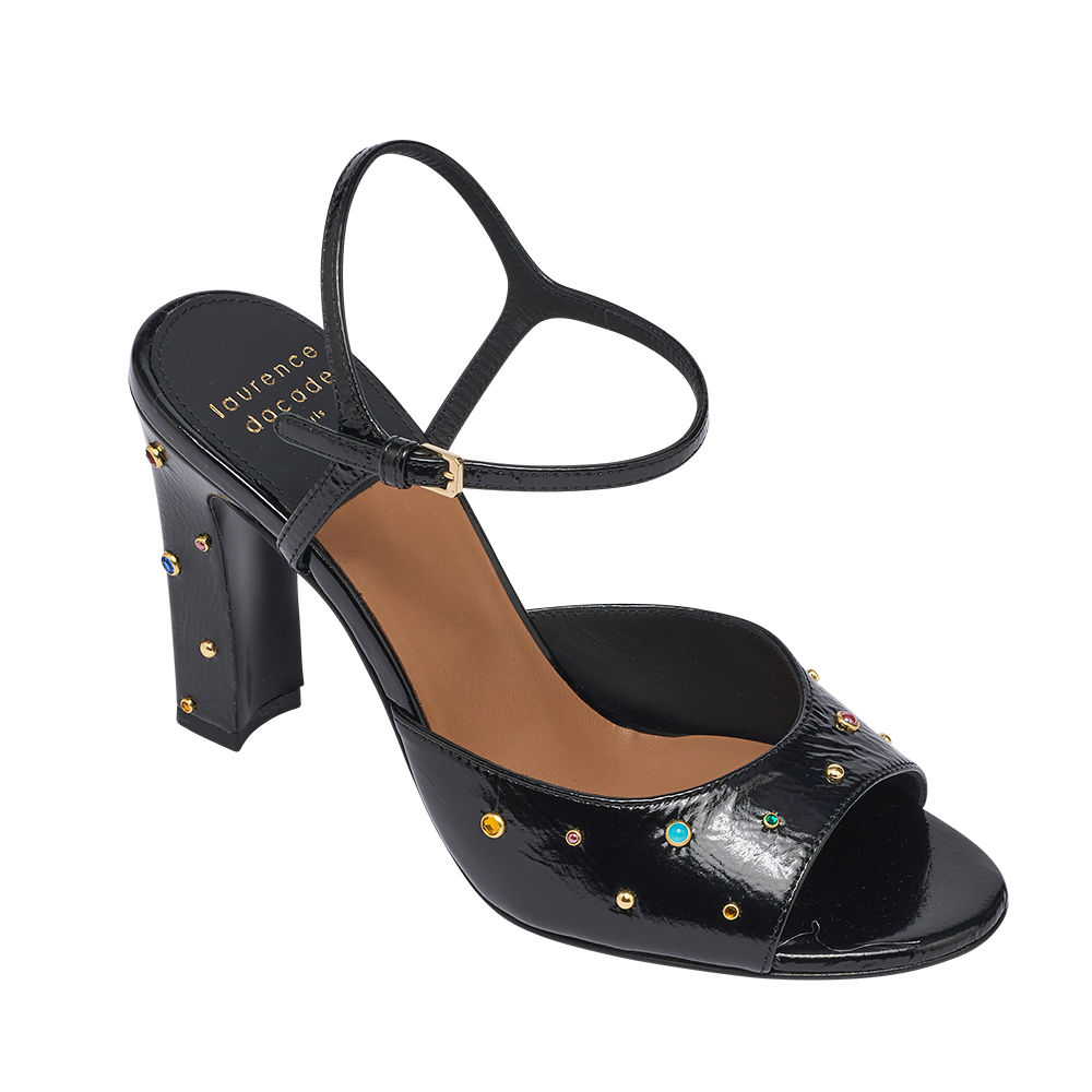 Sandales à talon de 9,5 cm ornées de pierres multicolores.
