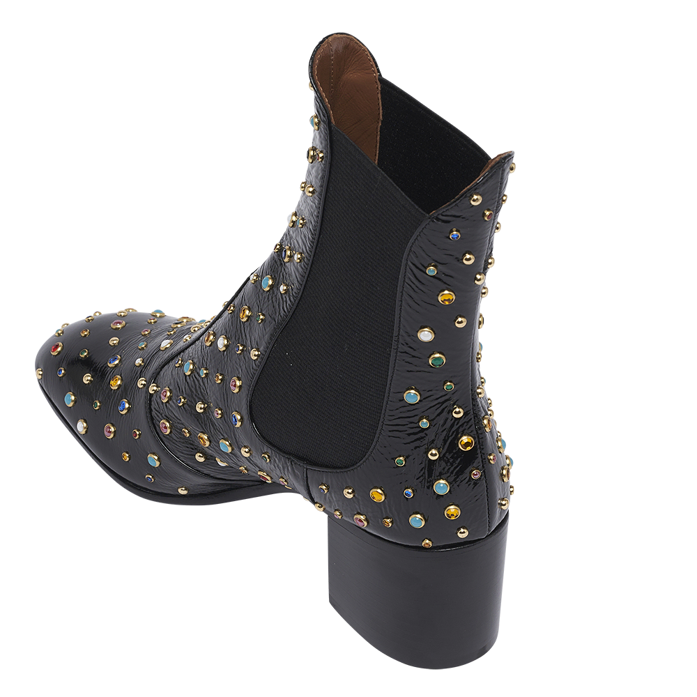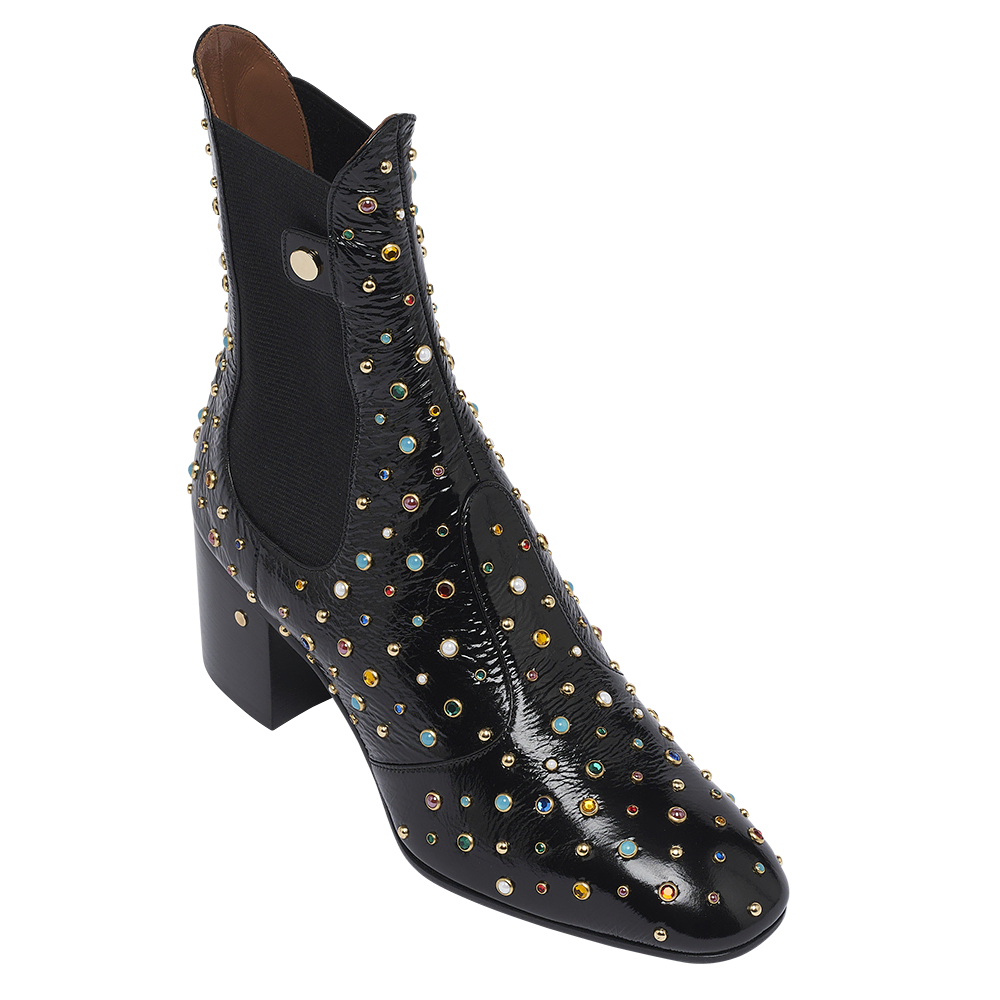 Composition : 100% veau, cuir brillant avec clous multicolores.