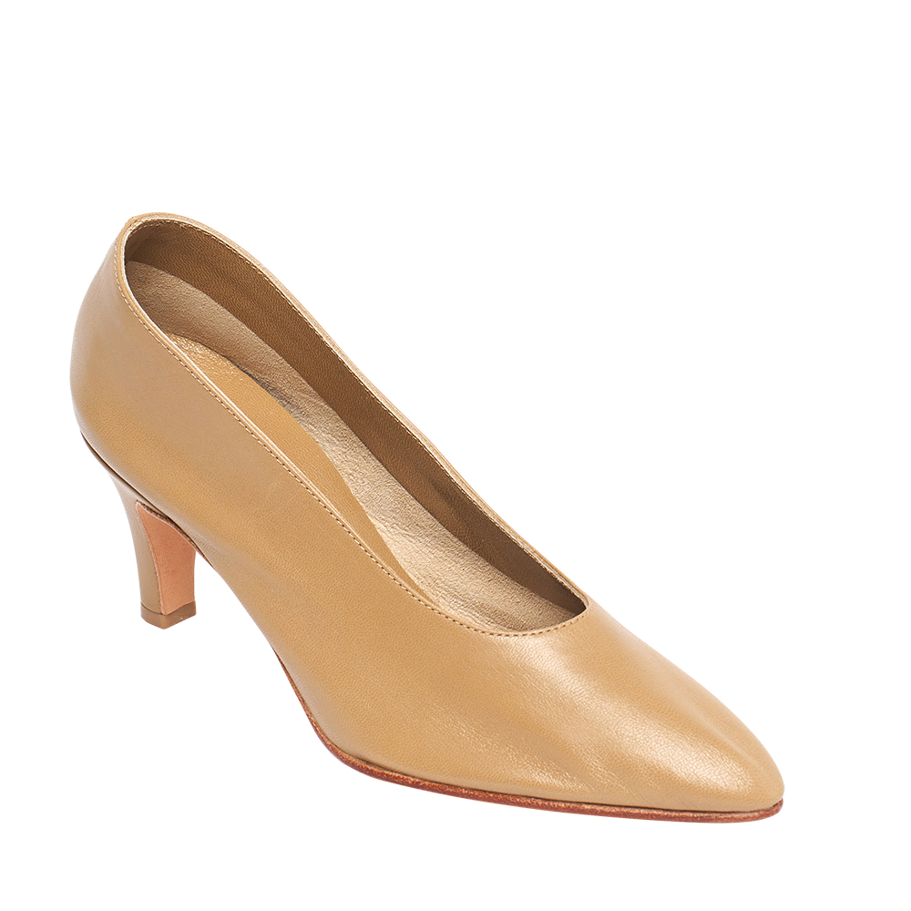 Escarpin à talon en cuir extra souple. Empeigne haute.
