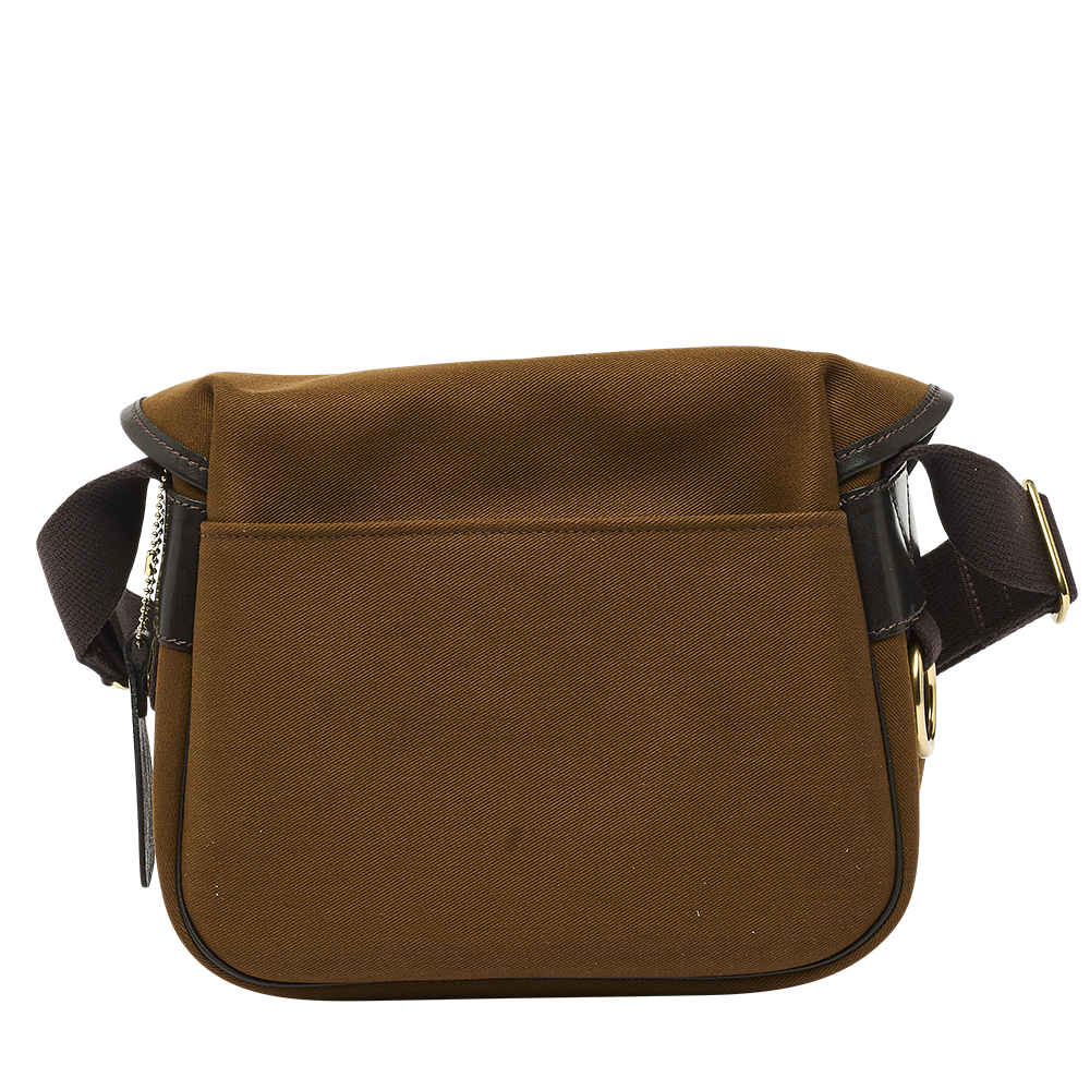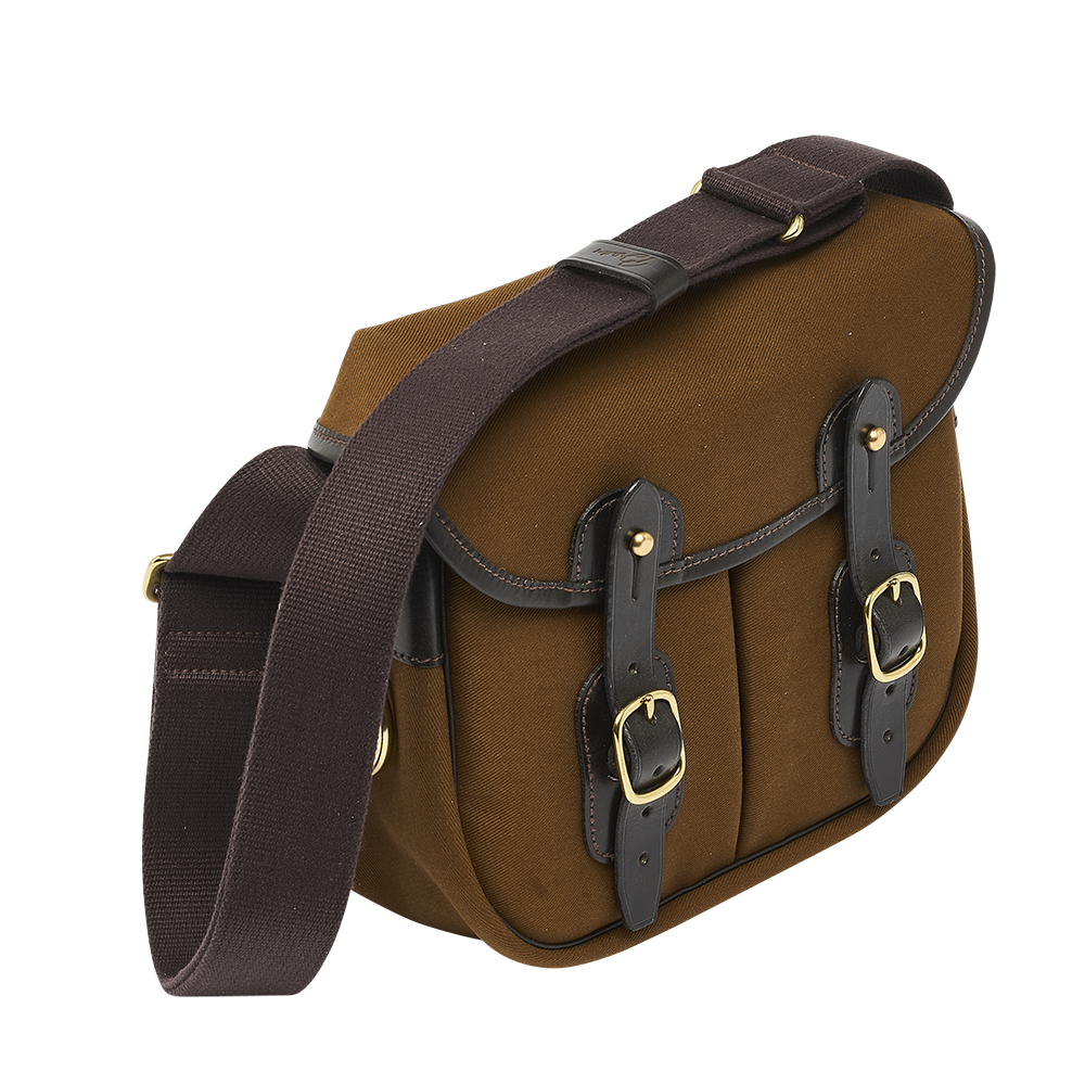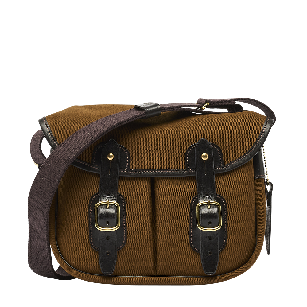 Le modèle est soigneusement fini avec des ferrures en laiton et une bandoulière réglable en coton.