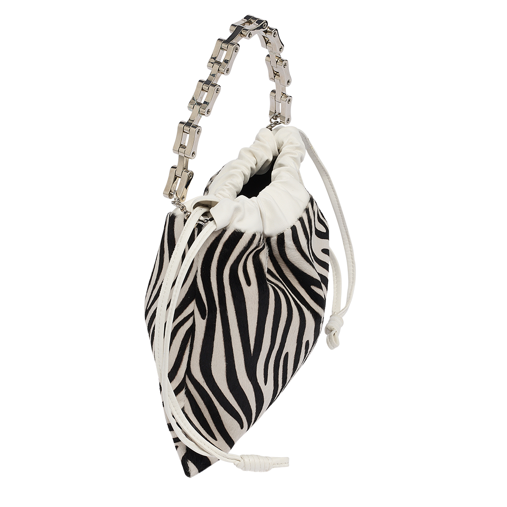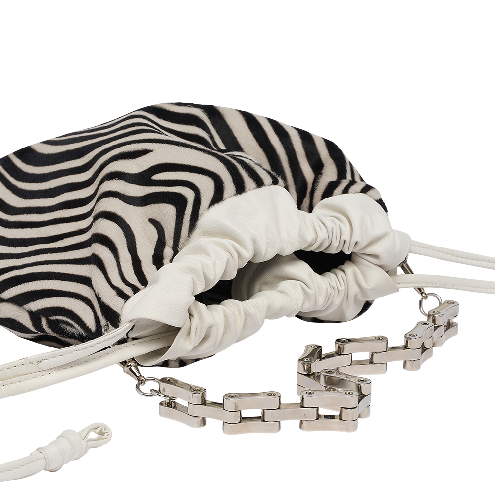 Sac bourse en cuir imprimé zèbre et agneau plongé